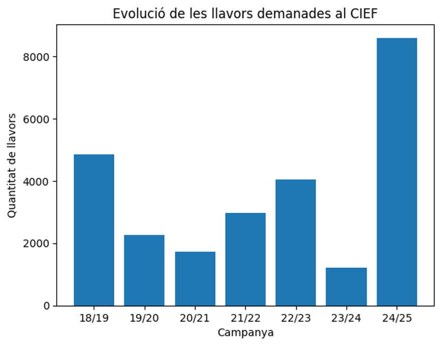 Les dades del CIEF mostren un punt d’inflexió clar el 2025: respecte a l’any anterior, les sol·licituds de llavors s’han incrementat un 610,92 %, assolint la xifra més alta de tota la sèrie històrica.