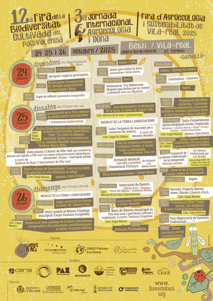 Enguany ens fa molta il·lusió anunciar la celebració conjunta de tres esdeveniments molt importants per al món agroecològic, social i ambiental del País Valencià, que tindran lloc els dies 24, 25 i 26 d’octubre de 2025.
